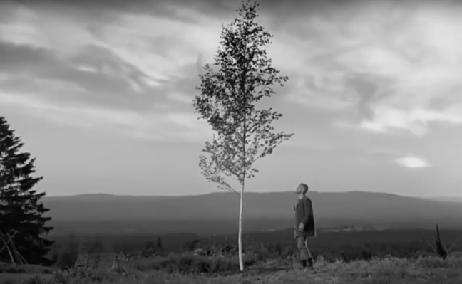 The featured image is from Ingmar Bergman’s 1960 film The Virgin Spring (link to a full feature on YouTube, although it’s in Swedish without subtitles; one benefit of not understanding the dialogue is that you can see the jealousy and pain on the female character’s face. Bergman always mastered the underbelly of female psychology.). Here, Max von Sydow, who also played the existentially fraught knight in Bergman’s Seventh Seal, prepares an act of elemental violence; he wrestles down the tree and hits himself with cut branches in the sauna. His jealous lover watches him beat his chest, her pregnant belly protruding damply into her listless legs, posture sloping under bored indifference.